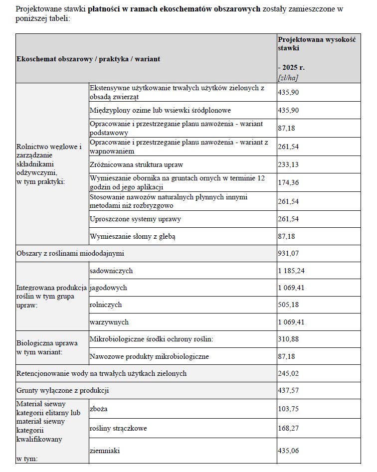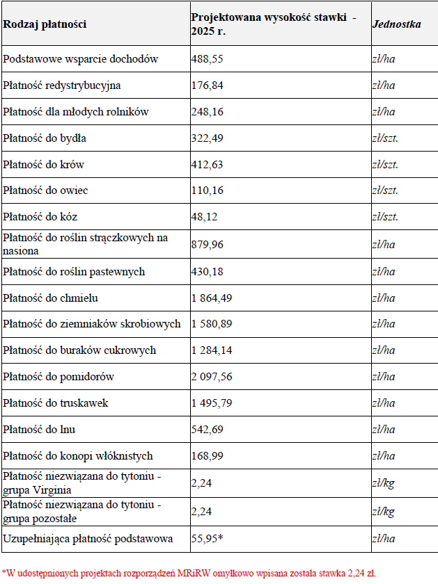 Projektowane stawki płatności bezpośrednich za 2025 r.