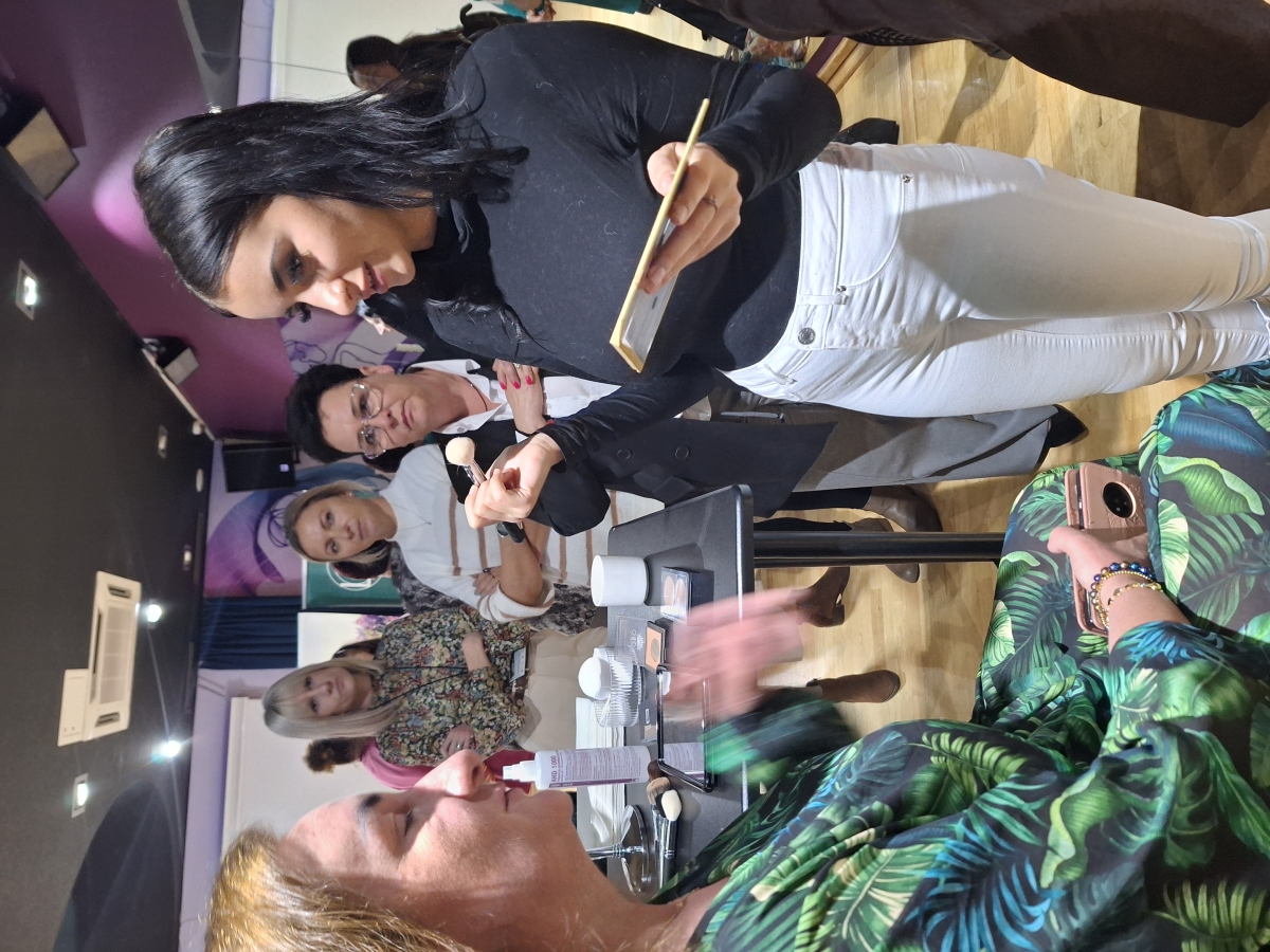 Następnie na uczestniczki czekała wyjątkowa niespodzianka. Każda z pań chce dobrze wyglądać przed kamerą i podczas wystąpień publicznych – nawet tych w social mediach. Tajniki sztuki autoprezentacji zdradziła pani mgr Maria Fliegner, prezentując pokaz szybkich i skutecznych sposobów przygotowania się do wystąpień publicznych, spotkań biznesowych i wydarzeń branżowych. Nie zabrakło też indywidualnych porad dotyczących stylu, kolorystyki i estetyki