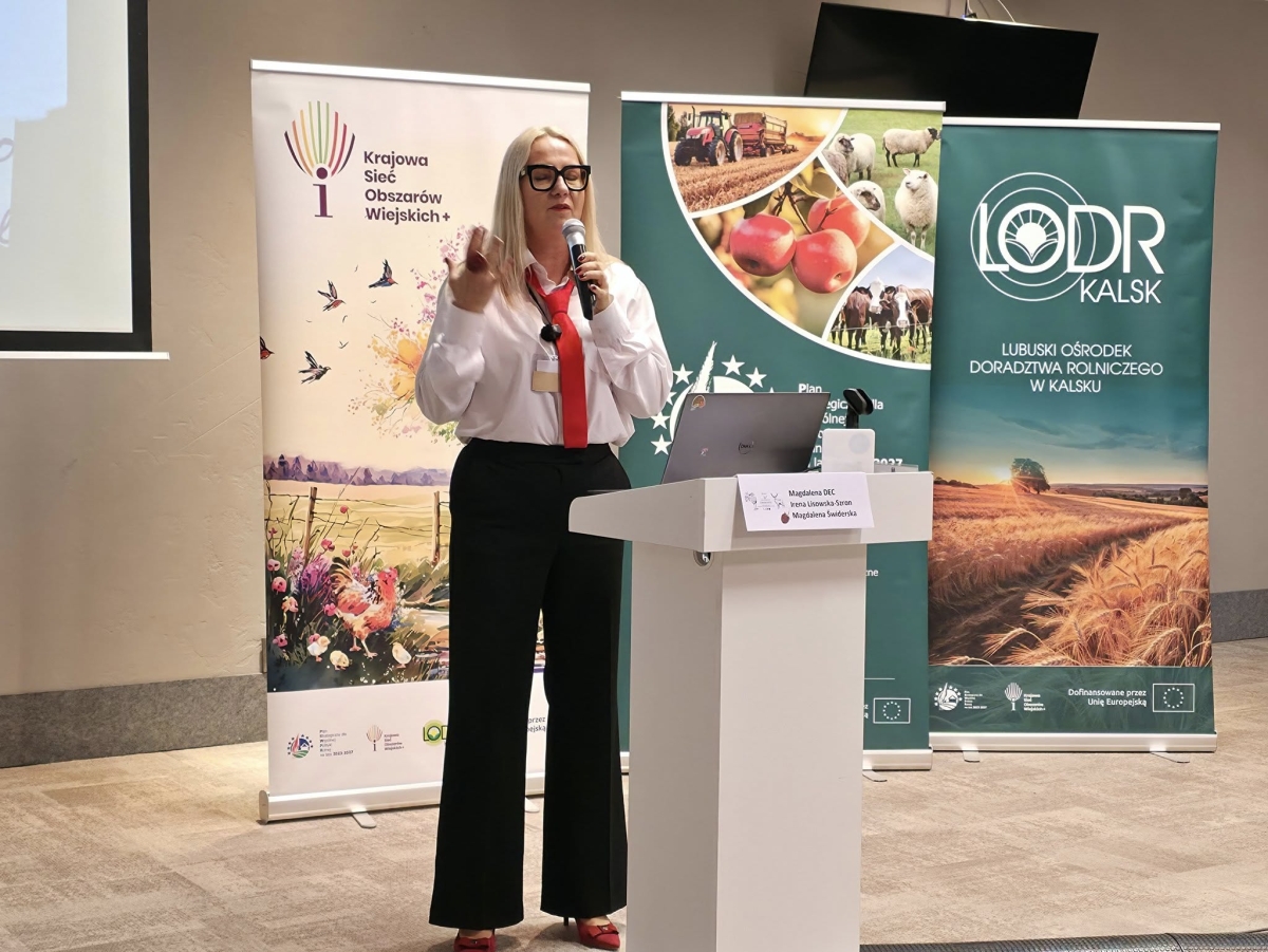 „Znaczenie innowacji w rolnictwie i rola Grup Operacyjnych EPI”. Karolina Kolańska – Broker Innowacji LODR Kalsk – zaprezentowała konkretne przykłady rozwiązań i projektów wprowadzanych na polskiej wsi dzięki współpracy w ramach EPI. Podkreśliła, że kobiety coraz częściej są inicjatorkami lokalnych innowacji i liderkami projektów.