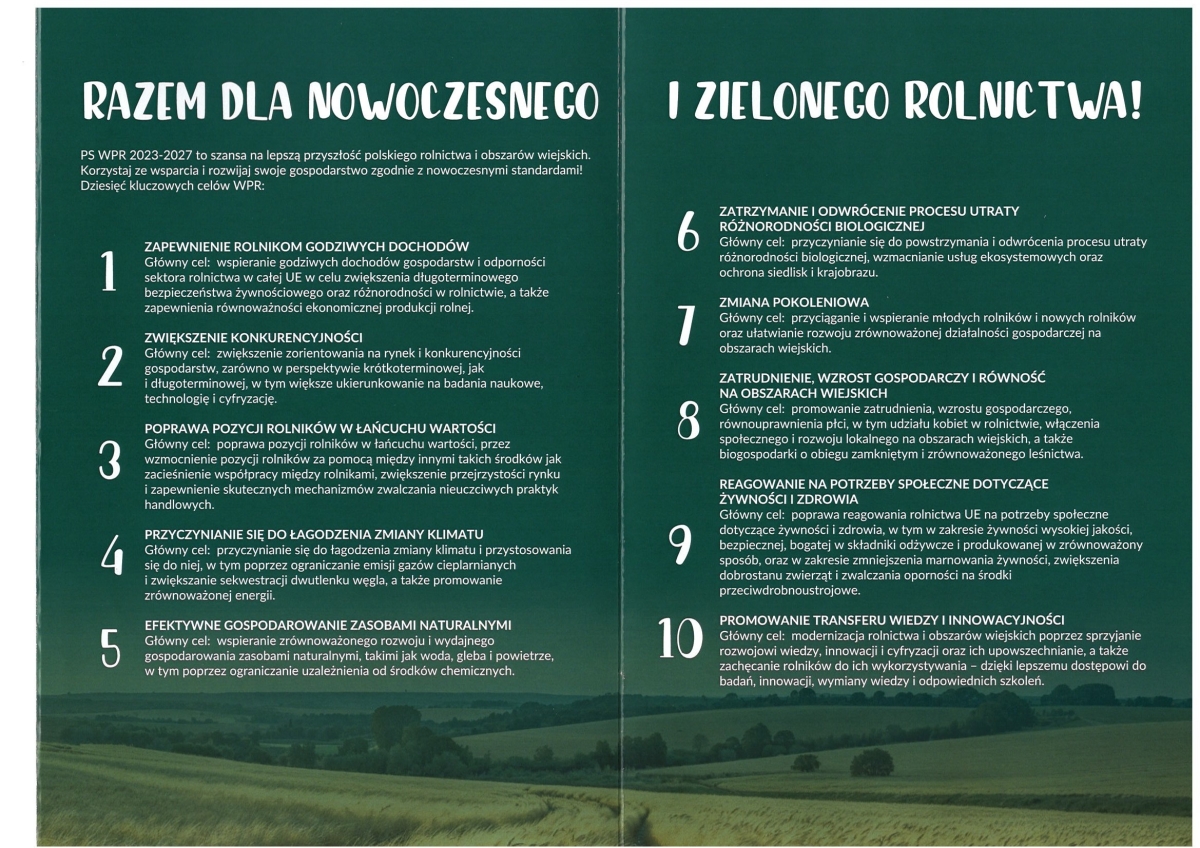 Wspólna Polityka Rolna (WPR) oraz możliwości wsparcia finansowego i merytorycznego, jakie oferuje nowa perspektywa unijna, stanowią kluczowe obszary działań lubuskiego zespołu SIR. Inicjatywy te wpisują się w Działanie 8: Informacja i promocja PS WPR na lata 2023–2027, realizowane w ramach Planu Strategicznego dla Wspólnej Polityki Rolnej (PS WPR) na lata 2023–2027.